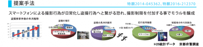 ■提案手法: スマートフォンによる撮影行為が日常化し盗撮行為へと繋がる恐れ、撮影制限を付加する事でモラルを醸成