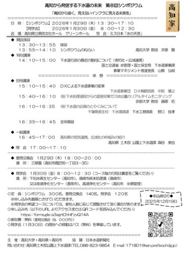 高知大学では、平成29年度より高知県、高知市とともに「高知から発信する下水道の未来」についてンポジウムを開催しています。